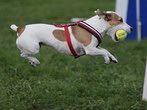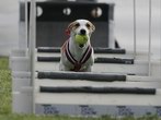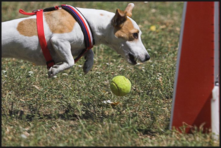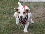 Naše nabíječka Diana jde na věc ... plavecká otočka ... honem zpátky ... a máme to!!! ... jazyk na vestě :)